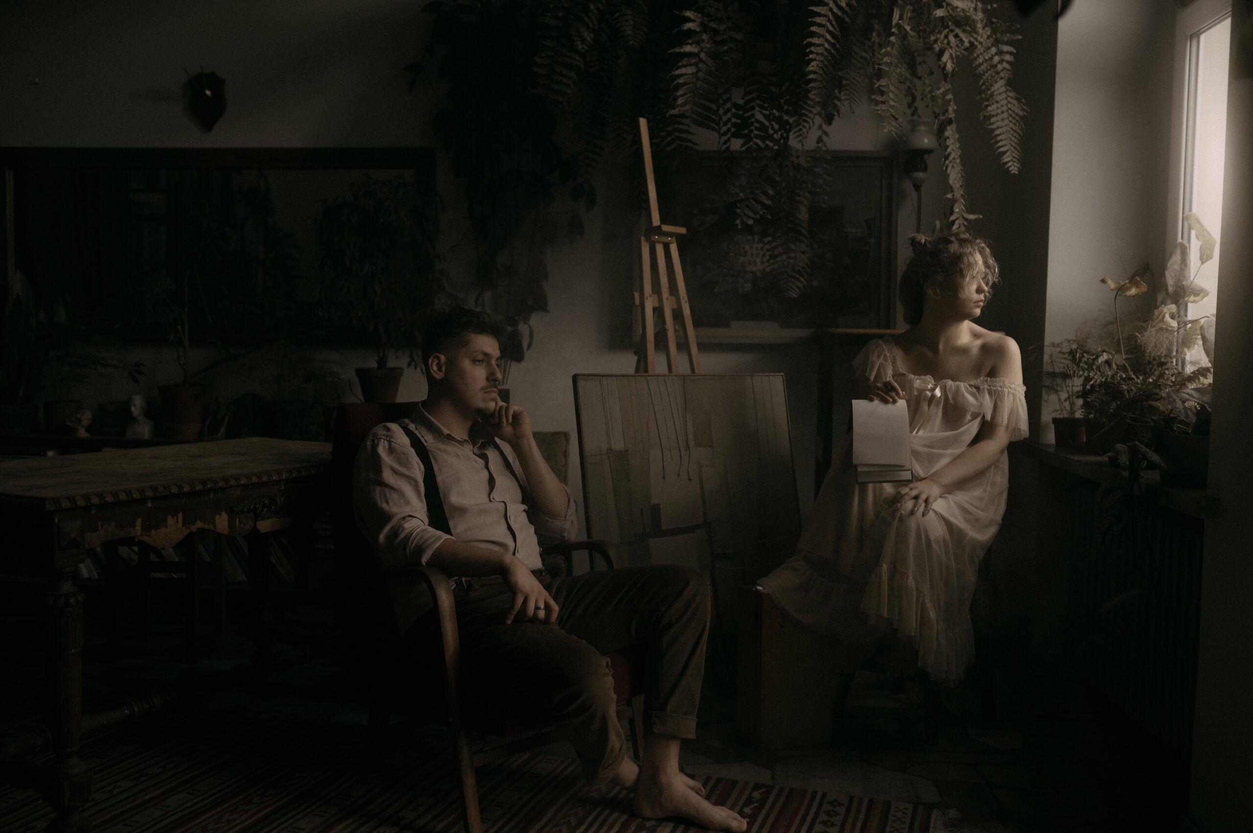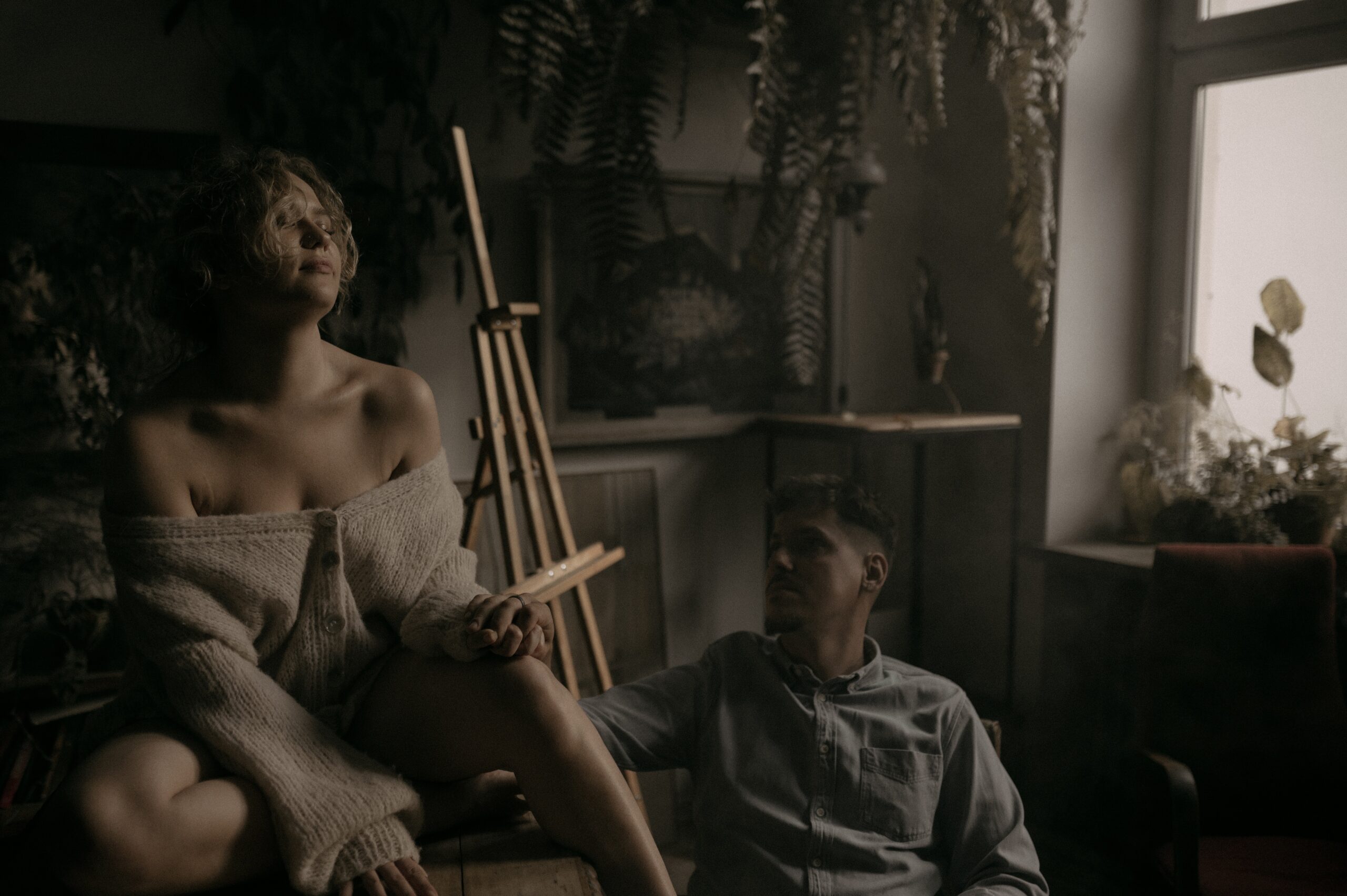 Artystyczna sesja z Wiką i Michałem powstała w wyjątkowej przestrzeni, gdzie sztuka, muzyka i emocje spotykają się w jednym kadrze. Dwóch artystów, ona tatuatorka, malarka,