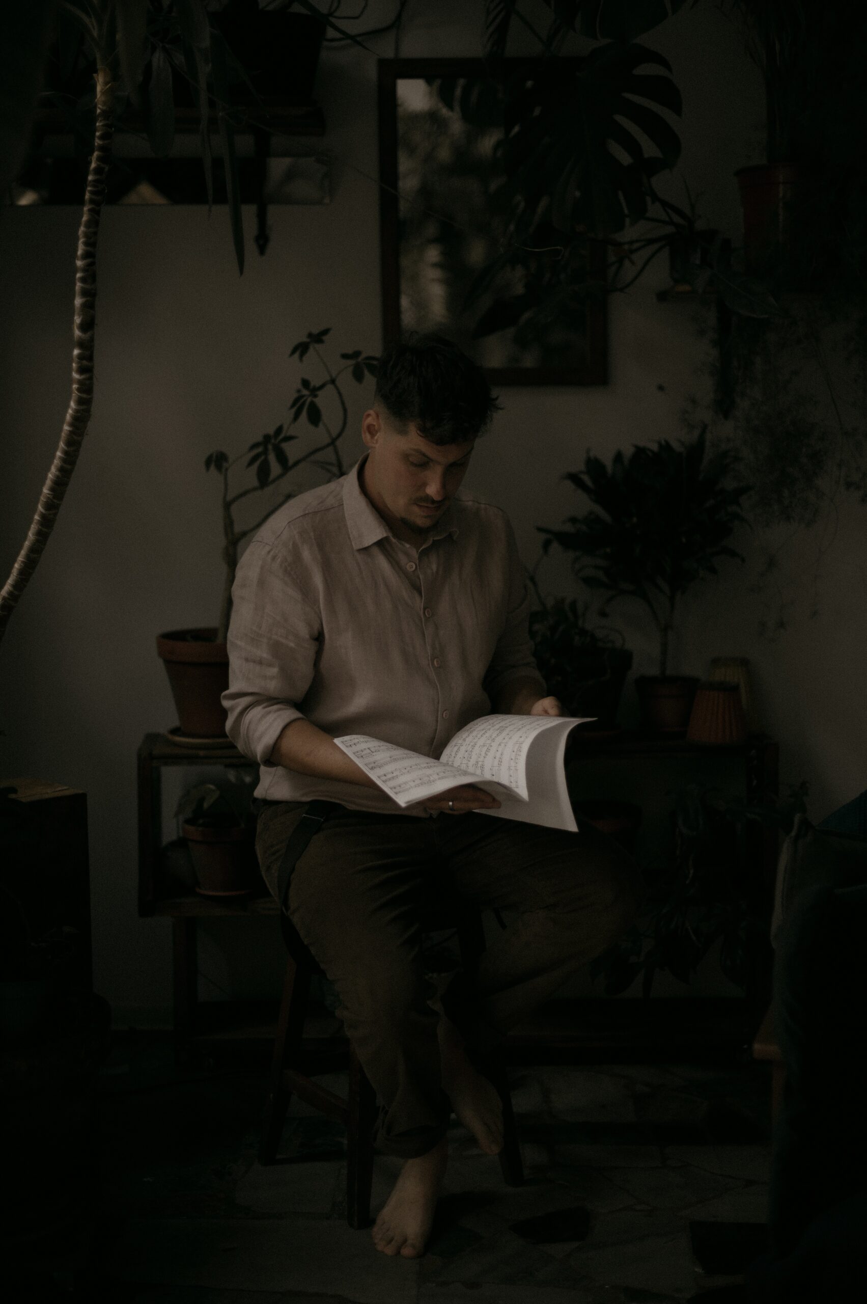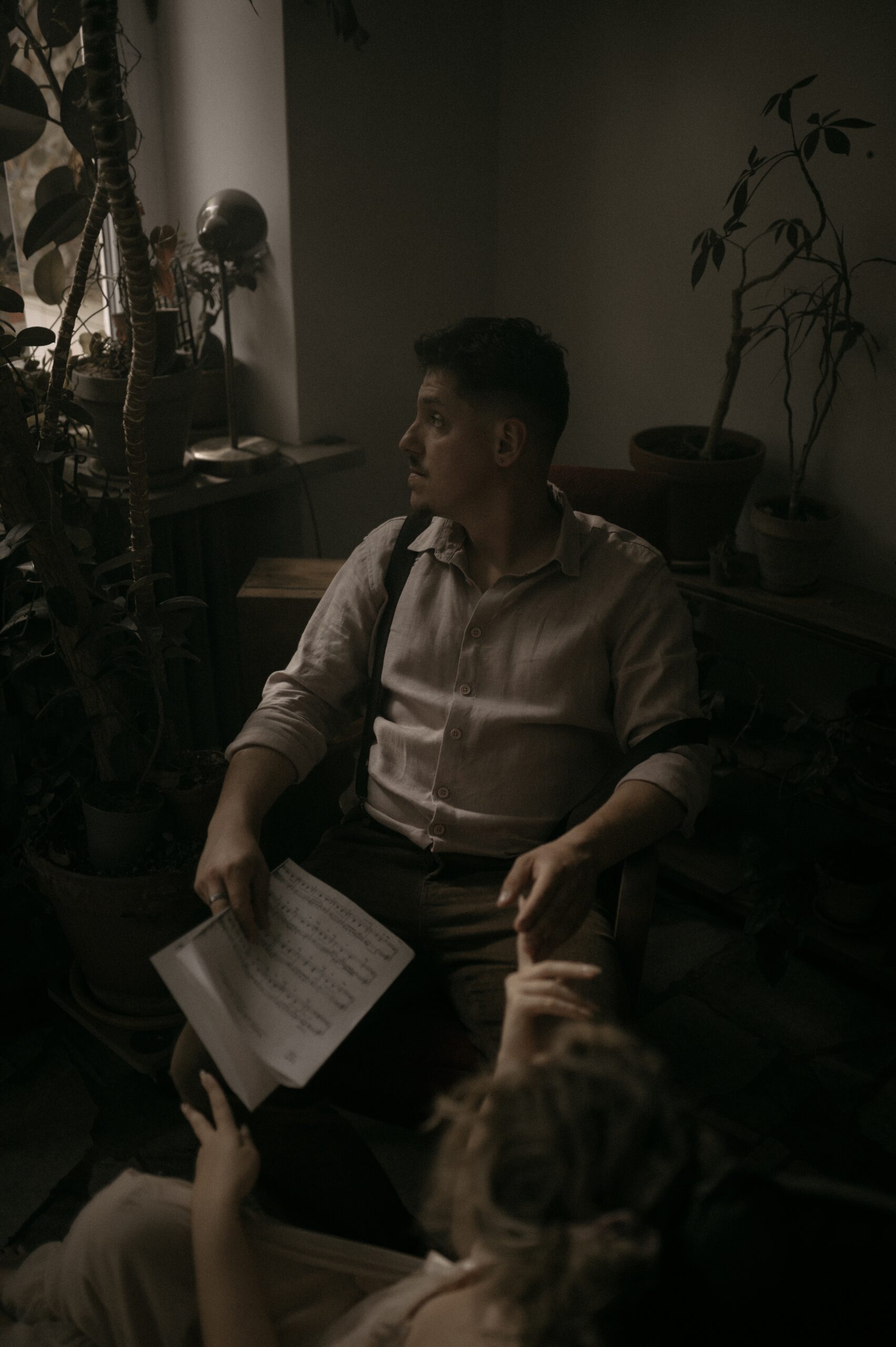 on muzyk, dla którego dźwięk jest naturalnym językiem. Sesja była przedłużeniem ich świata, bez reżyserii, bez pozowań.