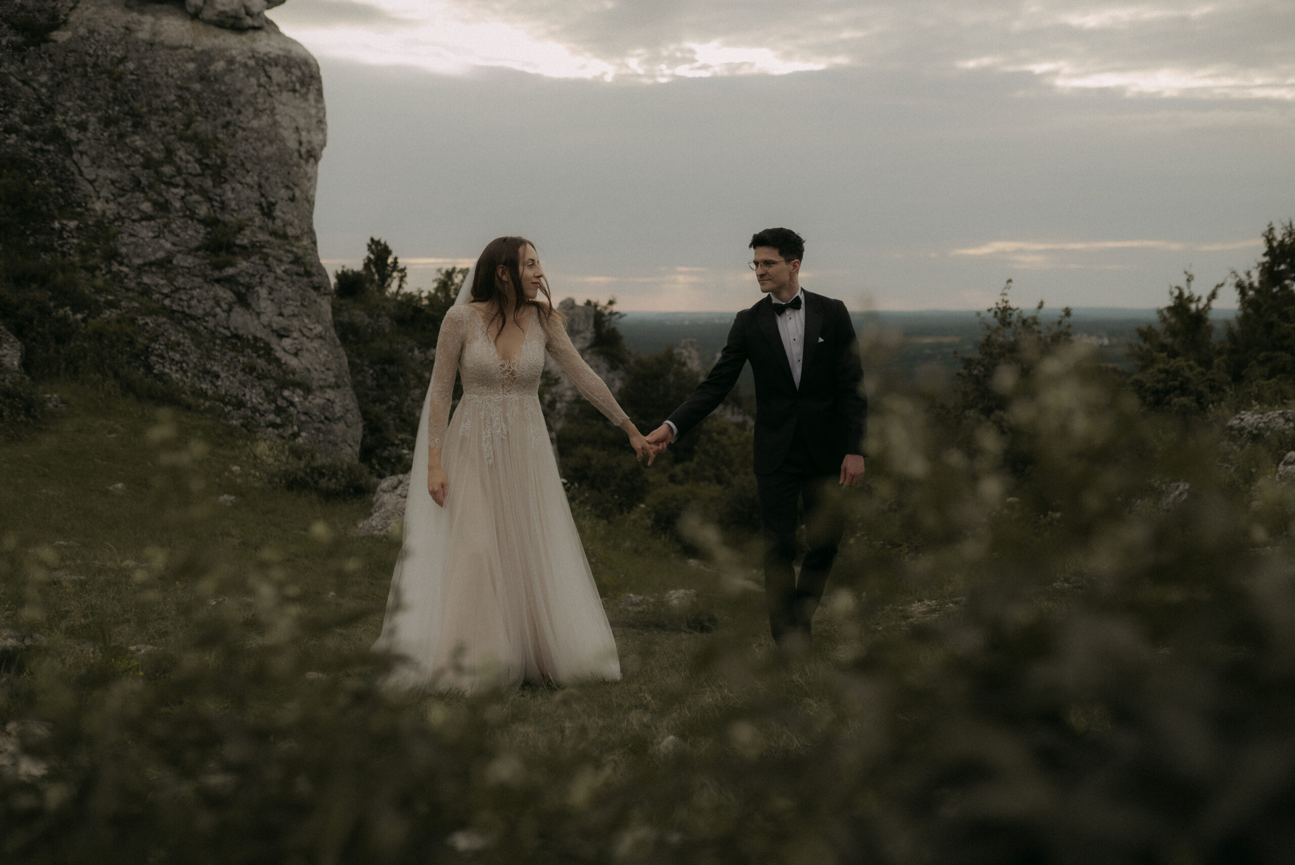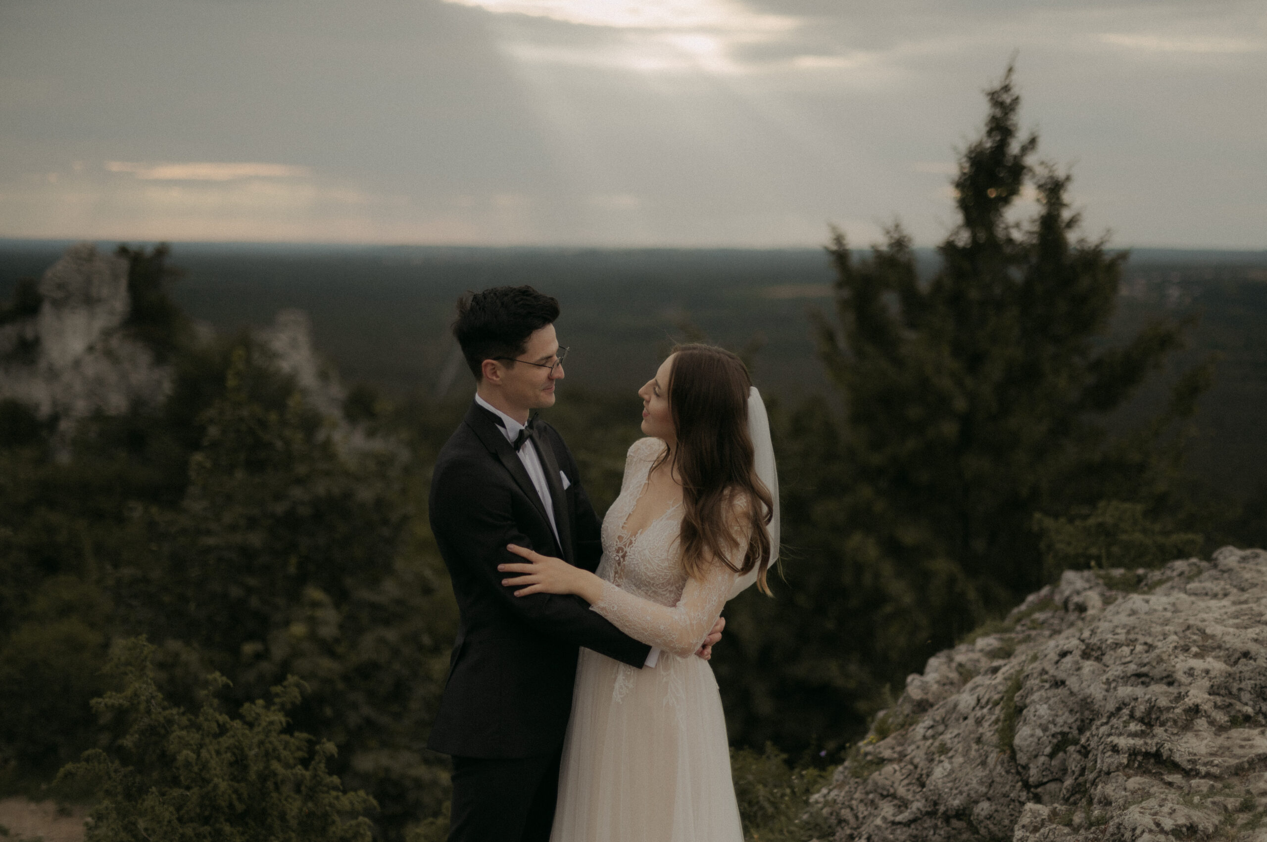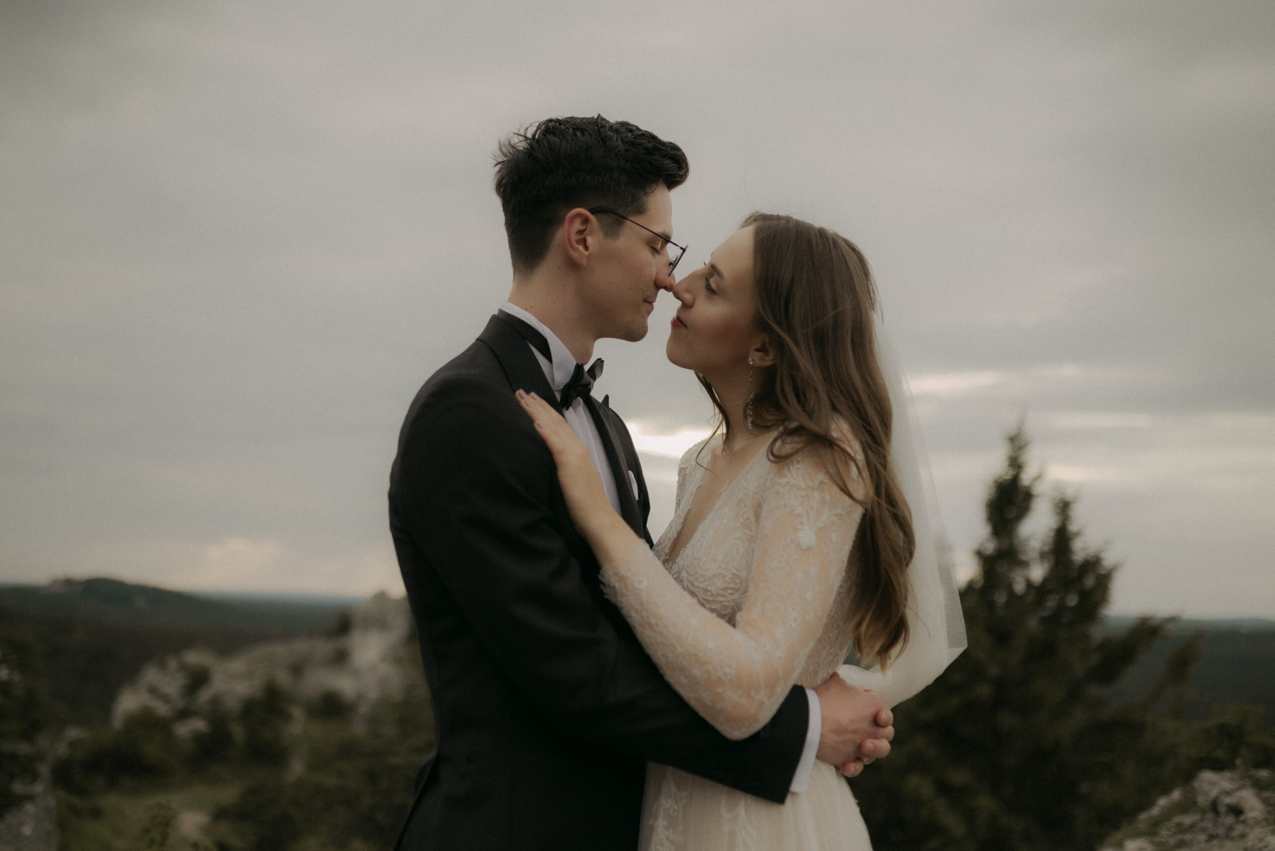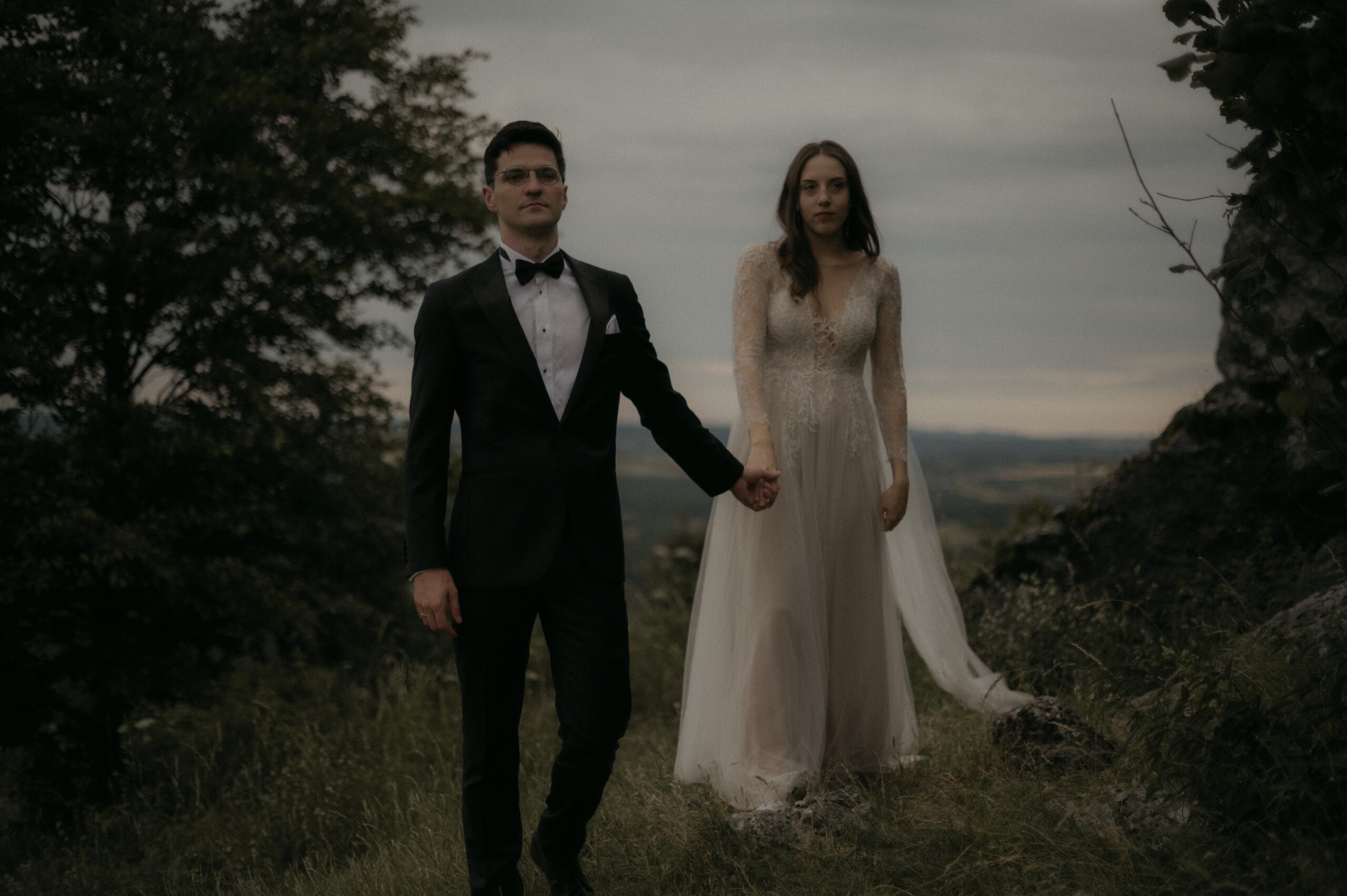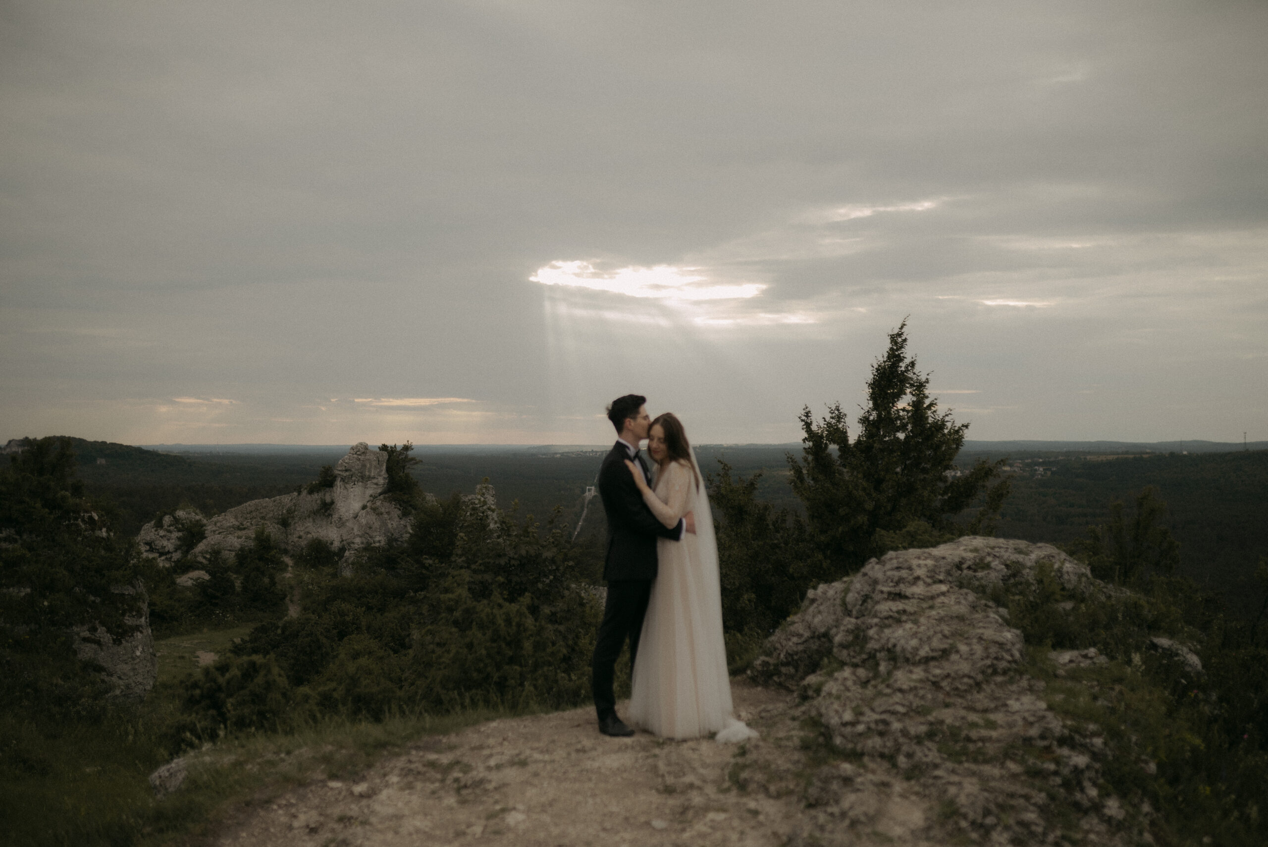 Są takie historie, które od pierwszej chwili brzmią jak melodia. Tak właśnie jest z Zosią i Przemkiem, których właśnie połączyła muzyka, a ich wspólna opowieść rozbrzmiewa harmonią miłości, bliskości i uśmiechu. Na sesję ślubną wybraliśmy Górę Zborów, miejsce pełne magii, przestrzeni i światła. Gdy dotarliśmy na szczyt, nasze oczy napełniły się zapierającym dech widokiem. Cały krajobraz wraz z Zosią i Przemkiem tańczyli w świetle, które jakby specjalnie dla nich zagrało ostatnie nuty dnia. Śmialiśmy się, żartowaliśmy, a każda chwila była lekka i prawdziwa. To było jedno z tych spotkań, podczas których naprawdę czujesz, że uczestniczysz w czymś wyjątkowym.