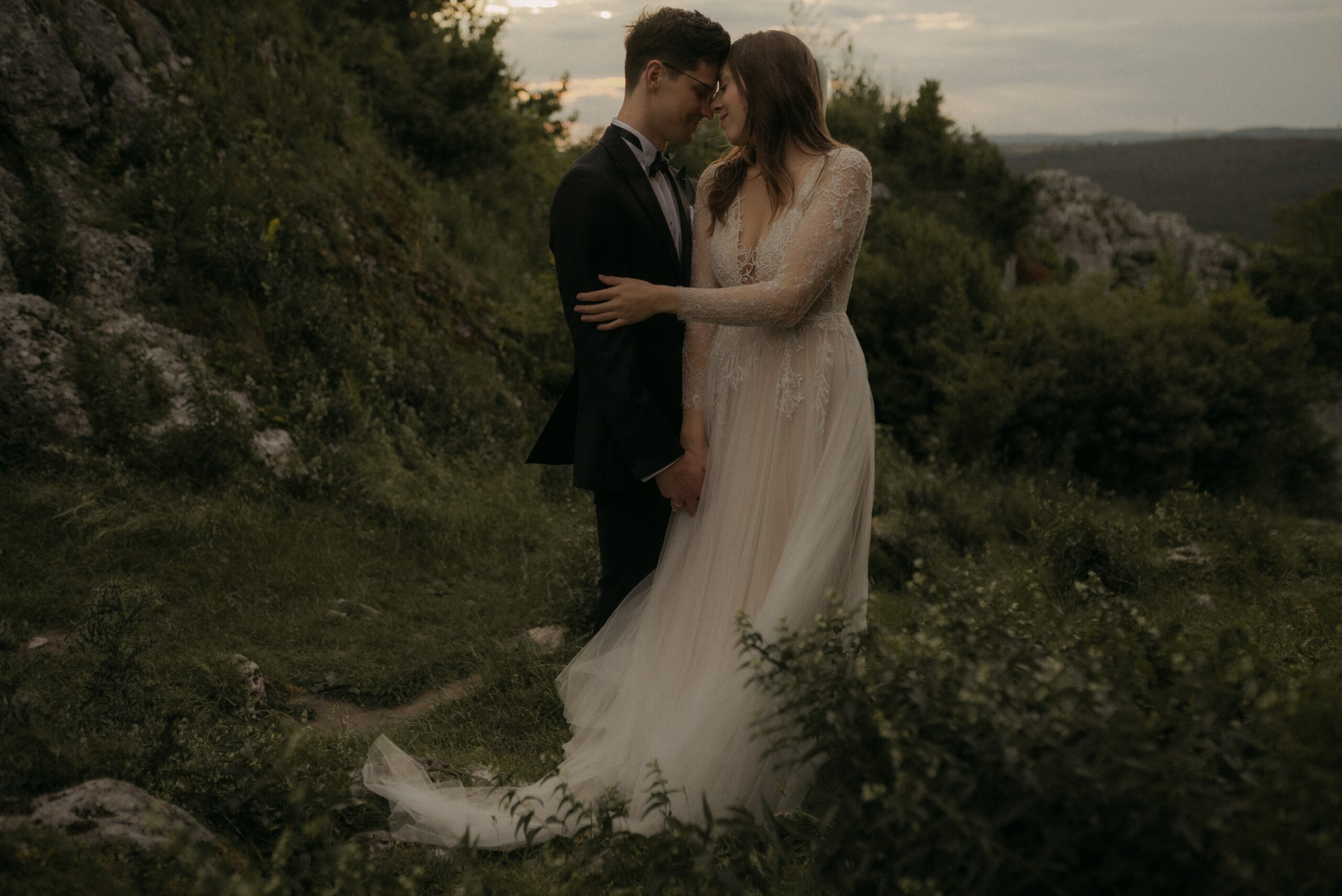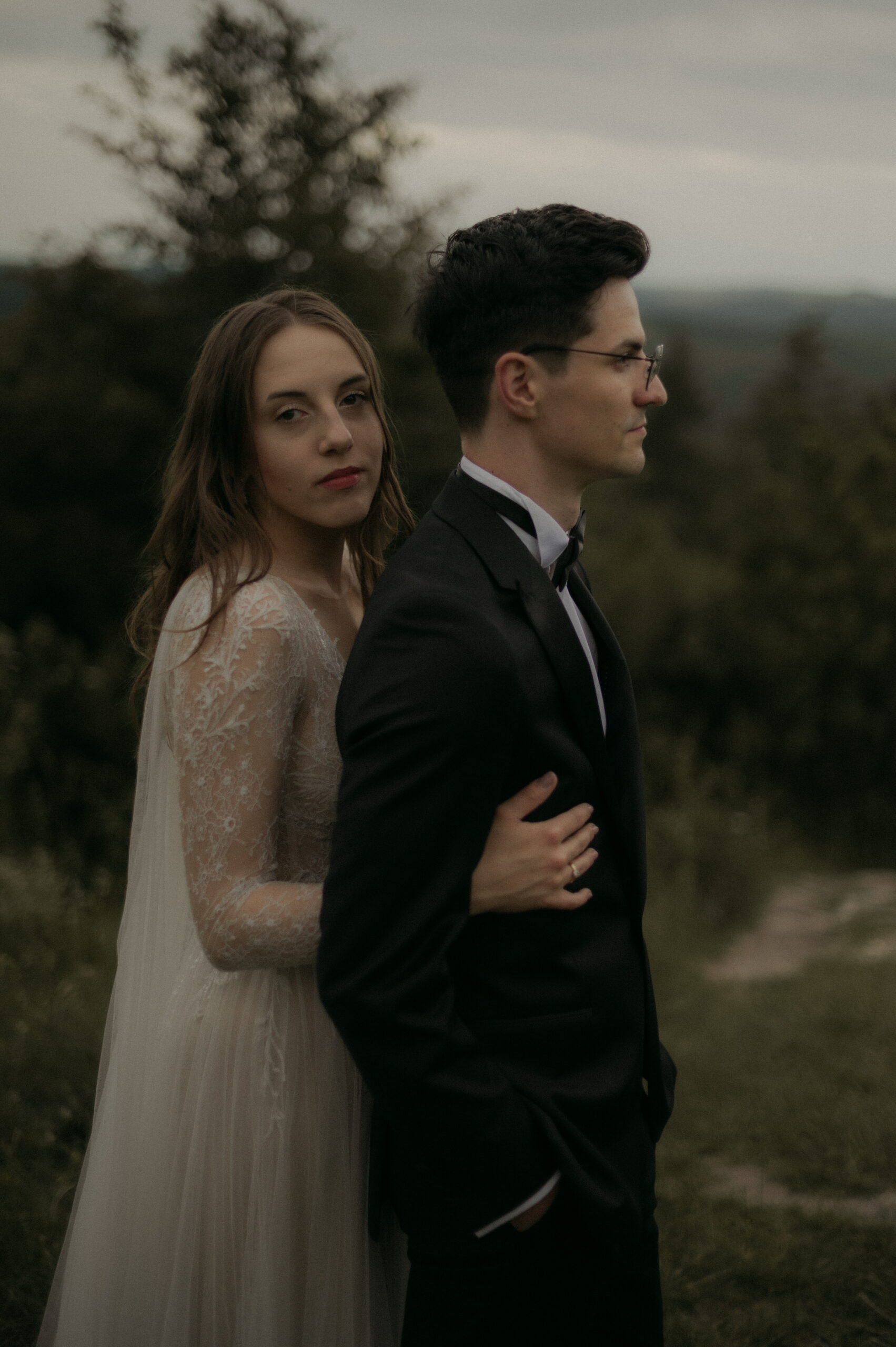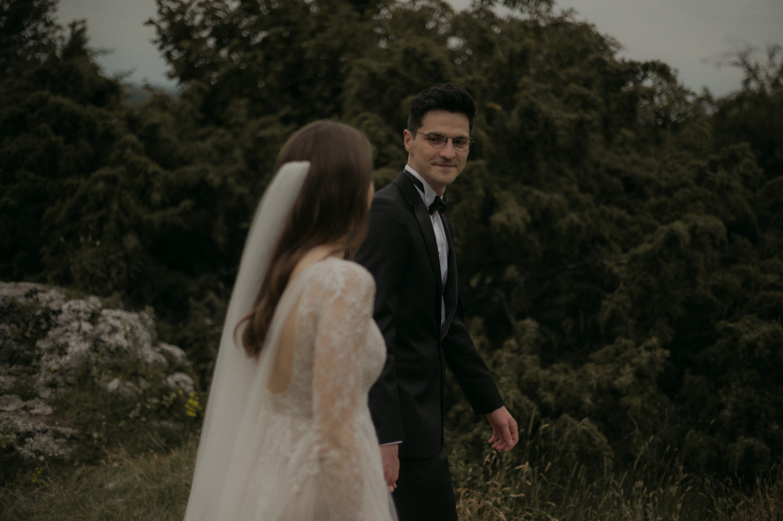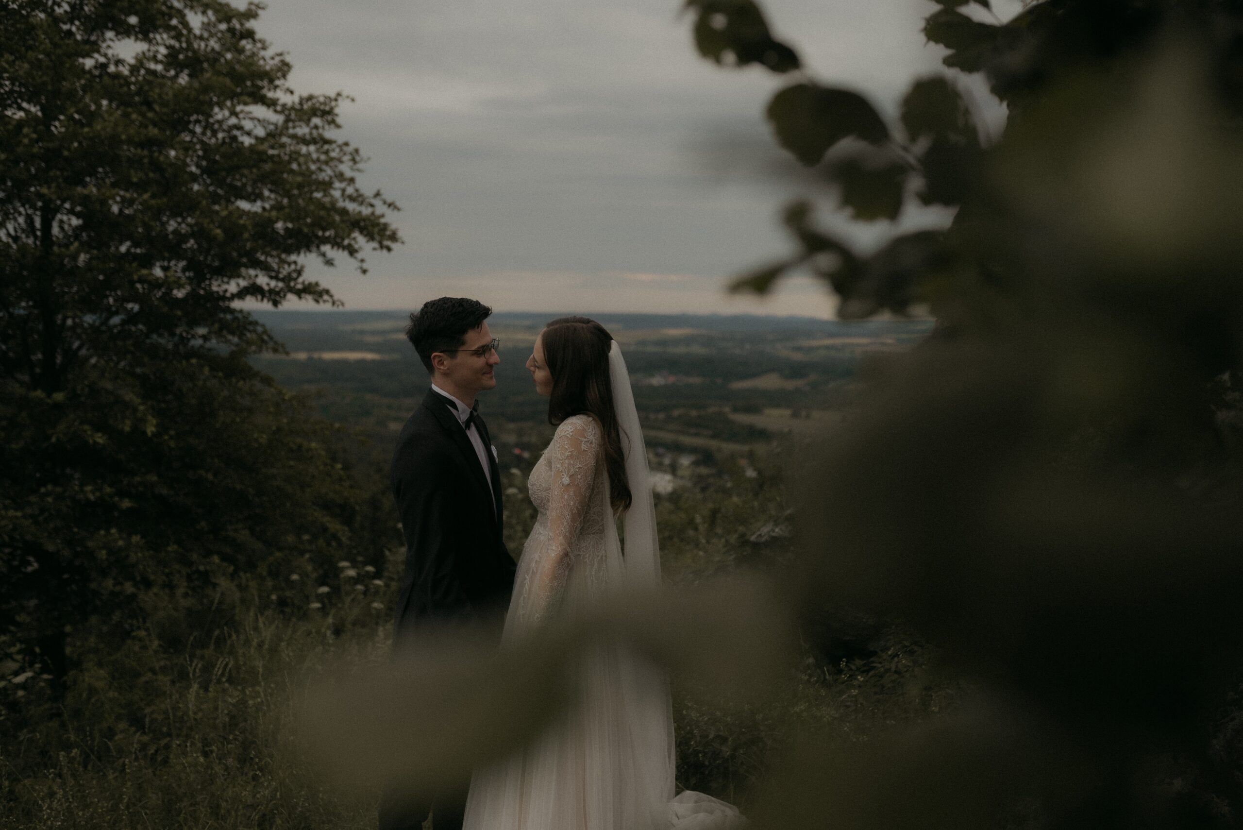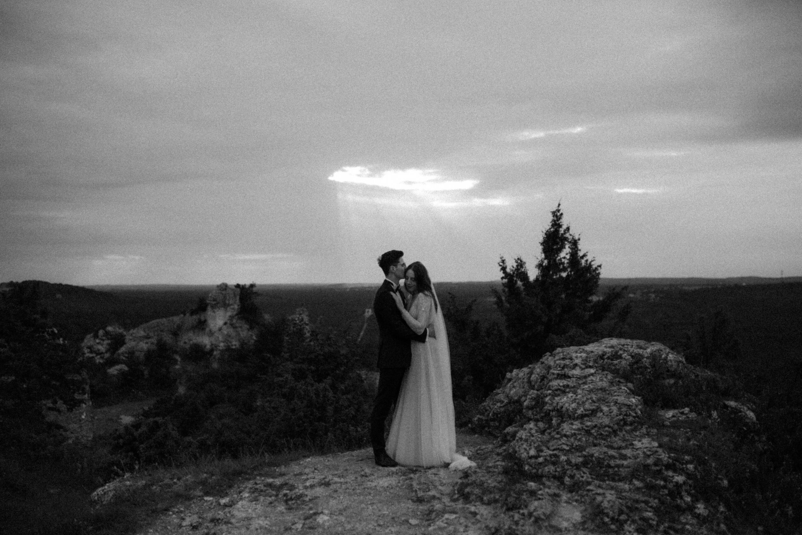 Są takie historie, które od pierwszej chwili brzmią jak melodia. Tak właśnie jest z Zosią i Przemkiem, których właśnie połączyła muzyka, a ich wspólna opowieść rozbrzmiewa harmonią miłości, bliskości i uśmiechu. Na sesję ślubną wybraliśmy Górę Zborów, miejsce pełne magii, przestrzeni i światła. Gdy dotarliśmy na szczyt, nasze oczy napełniły się zapierającym dech widokiem. Cały krajobraz wraz z Zosią i Przemkiem tańczyli w świetle, które jakby specjalnie dla nich zagrało ostatnie nuty dnia. Śmialiśmy się, żartowaliśmy, a każda chwila była lekka i prawdziwa. To było jedno z tych spotkań, podczas których naprawdę czujesz, że uczestniczysz w czymś wyjątkowym.