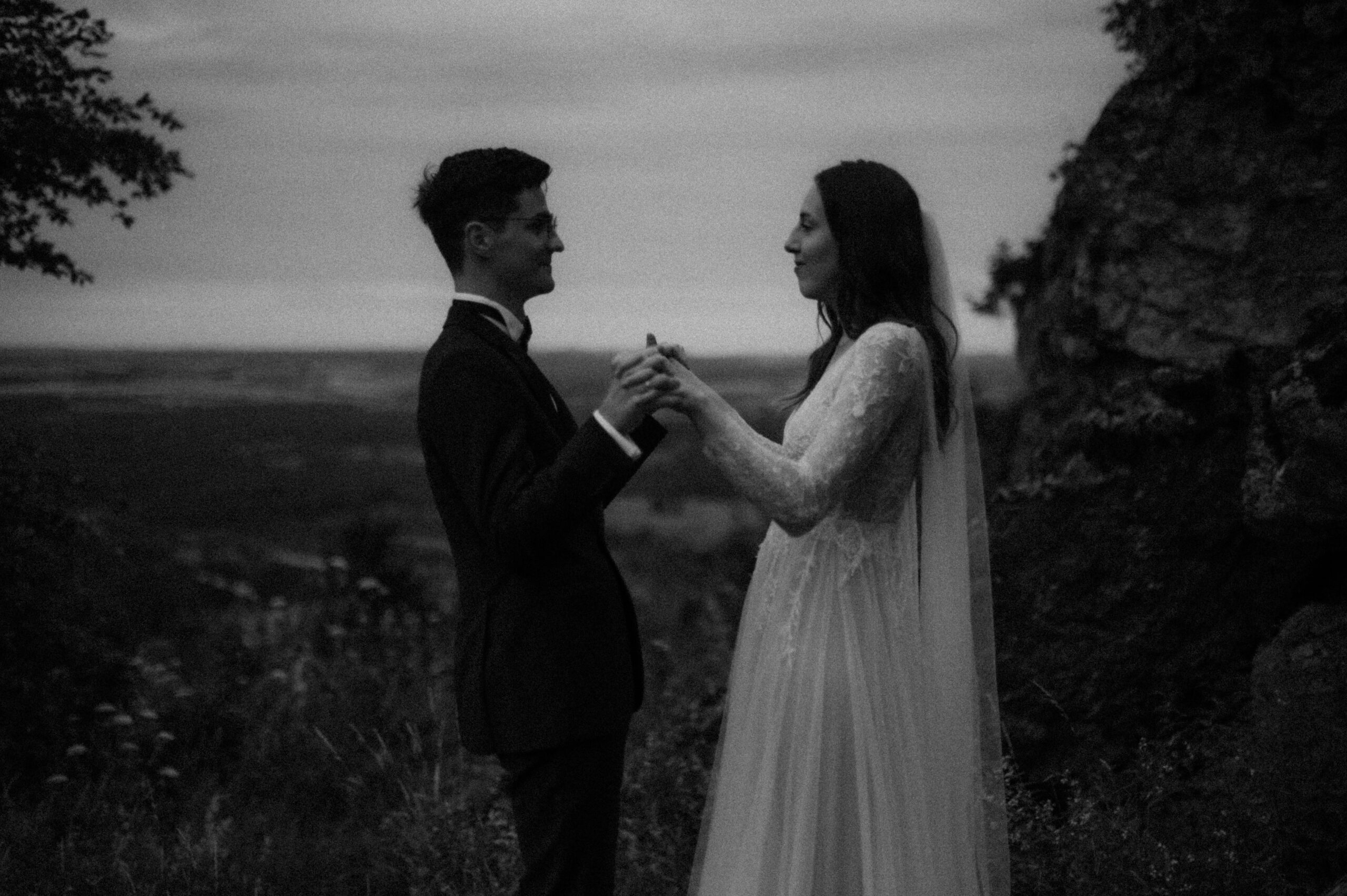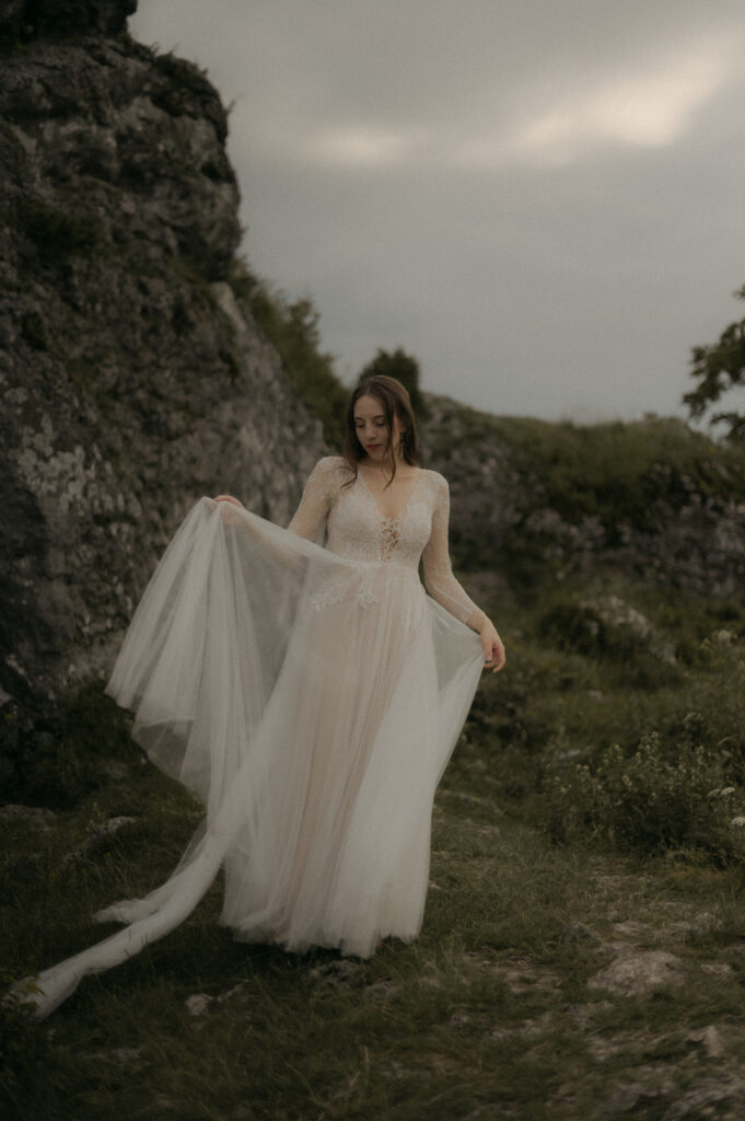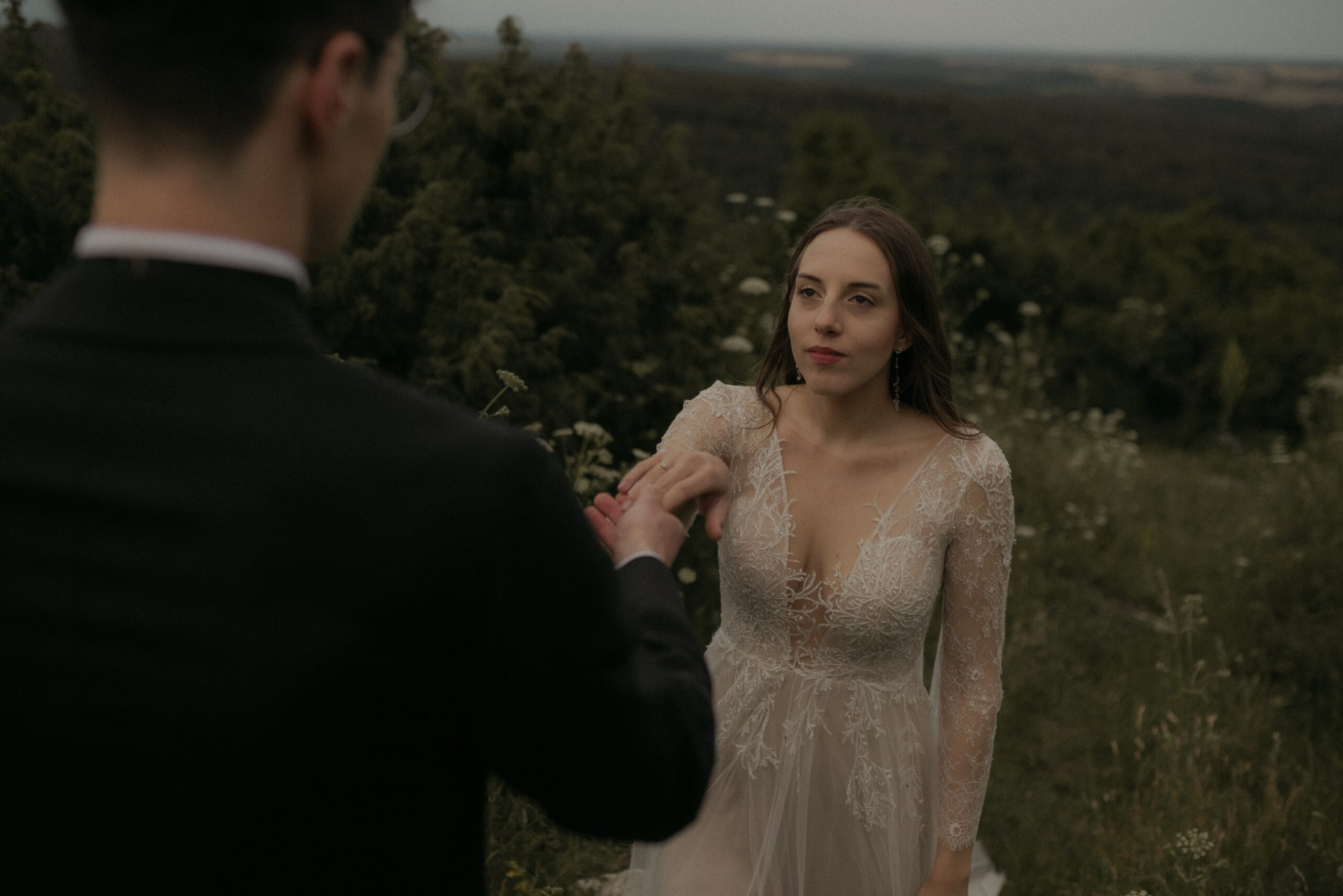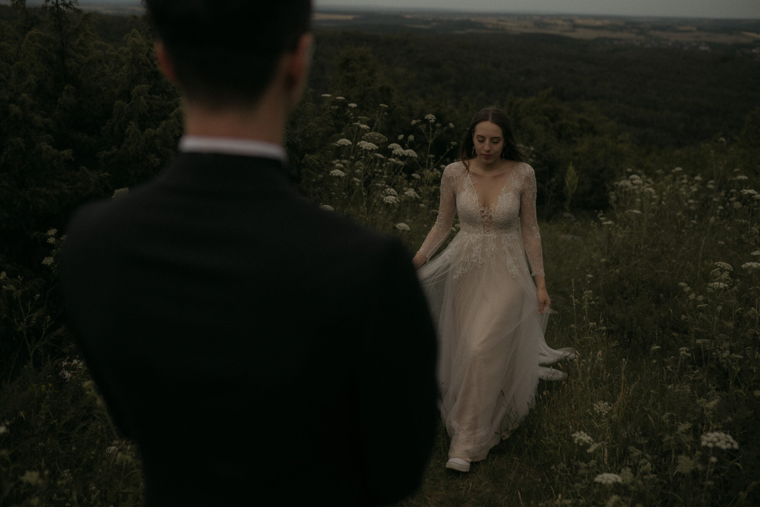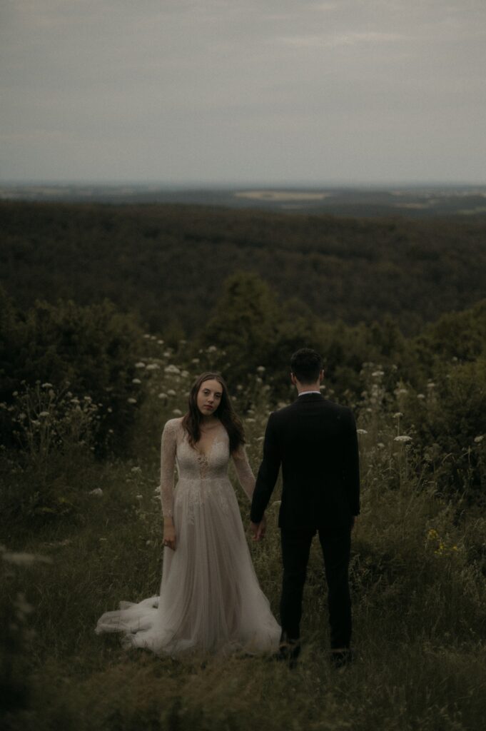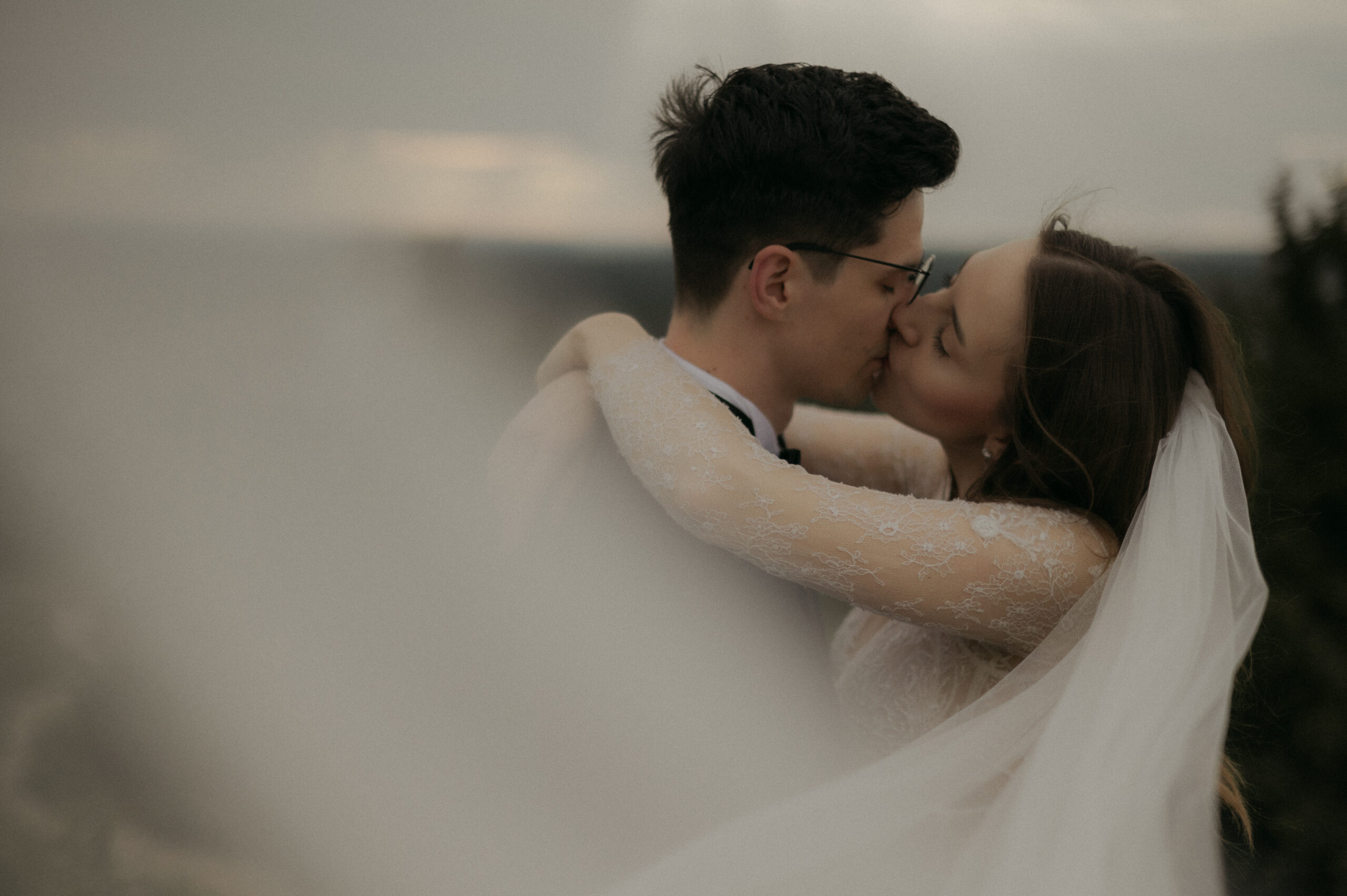 Są takie historie, które od pierwszej chwili brzmią jak melodia. Tak właśnie jest z Zosią i Przemkiem, których właśnie połączyła muzyka, a ich wspólna opowieść rozbrzmiewa harmonią miłości, bliskości i uśmiechu. Na sesję ślubną wybraliśmy Górę Zborów, miejsce pełne magii, przestrzeni i światła. Gdy dotarliśmy na szczyt, nasze oczy napełniły się zapierającym dech widokiem. Cały krajobraz wraz z Zosią i Przemkiem tańczyli w świetle, które jakby specjalnie dla nich zagrało ostatnie nuty dnia. Śmialiśmy się, żartowaliśmy, a każda chwila była lekka i prawdziwa. To było jedno z tych spotkań, podczas których naprawdę czujesz, że uczestniczysz w czymś wyjątkowym.